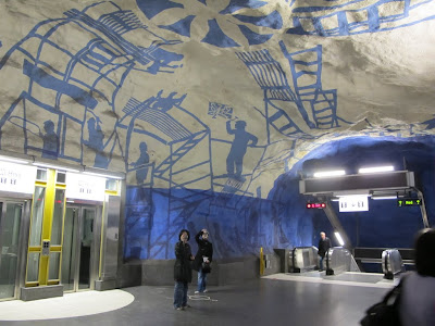 搭了斯德哥爾摩有名的地鐵藍線~ 經過設計師&藝術家巧手,陰森森的洞穴感即刻變得很特別,真的是"別有洞天"吶!!